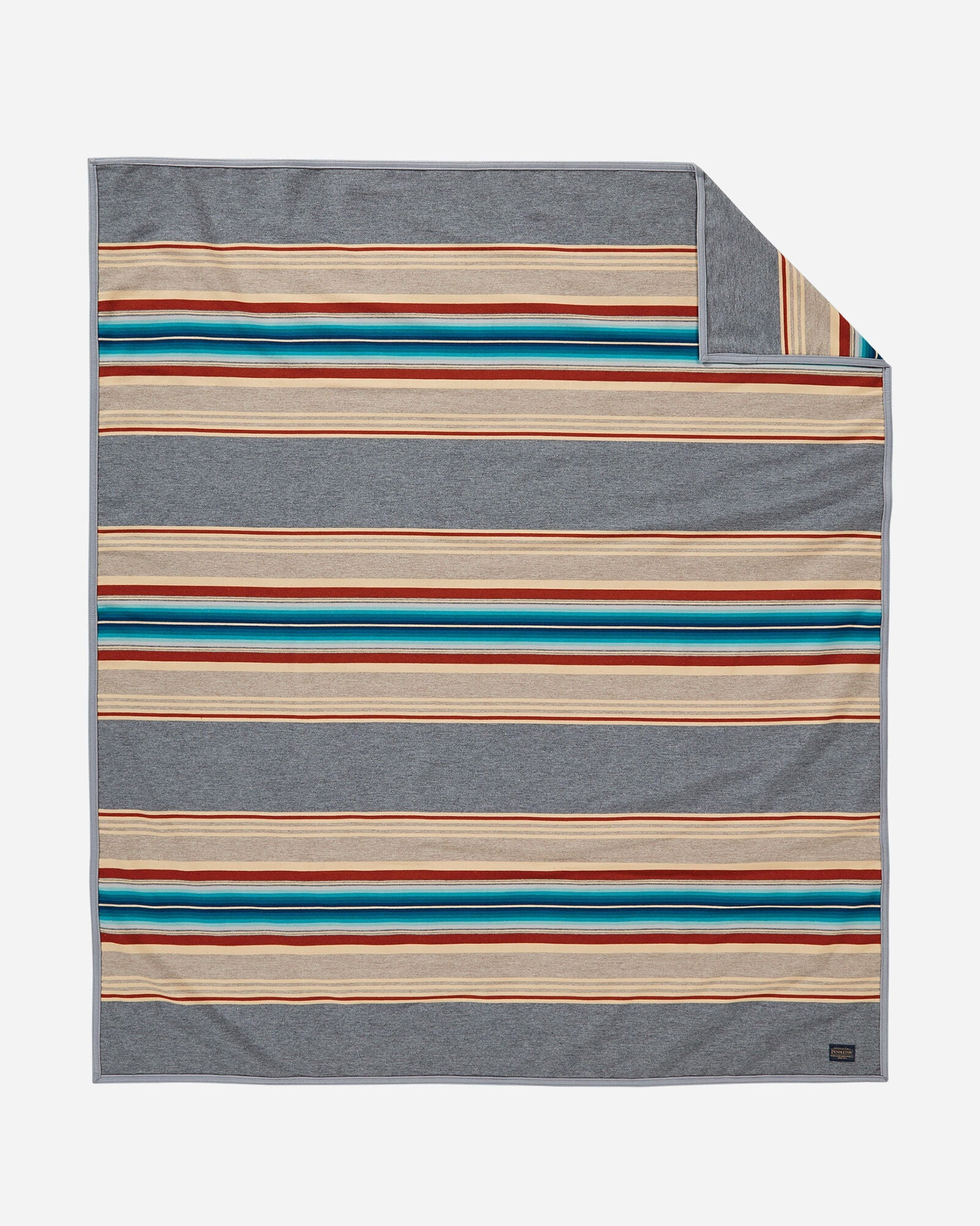 In expert hands, wool takes dye like no other fiber, creating a permanently rich color you'll admire for years. These energetic, vibrant stripes are inspired by the celebrated serape patterns of Saltillo, Mexico, and woven in our Pacific Northwest mills. A lighter weight makes these blankets just right for late summer and early fall.