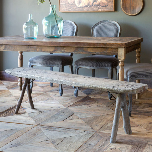 With its beautifully rustic look, this primitive wood bench would be useful for additional seating around a dining table, in a hallway or as a footrest. Its rough hewn detailing adds to its historic-looking characteristics.